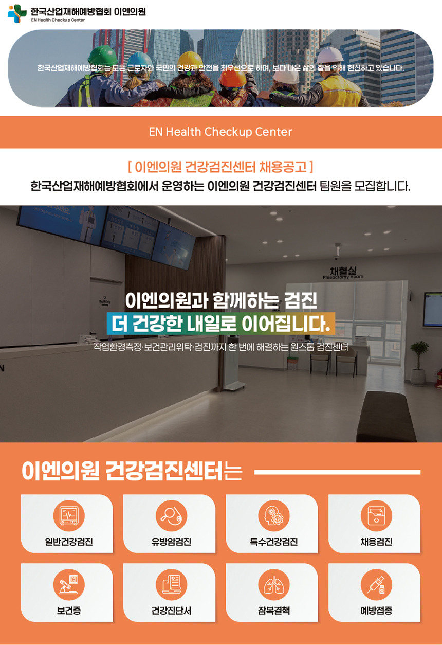 (2026년 정기) 한국산업재해예방협회 이엔의원 간호사/임상병리사/방사선사/행정/간호조무사 채용공고